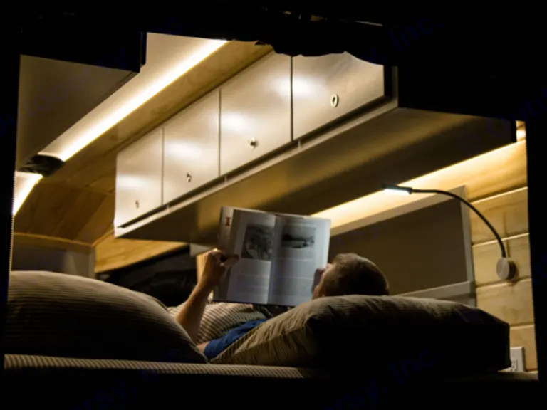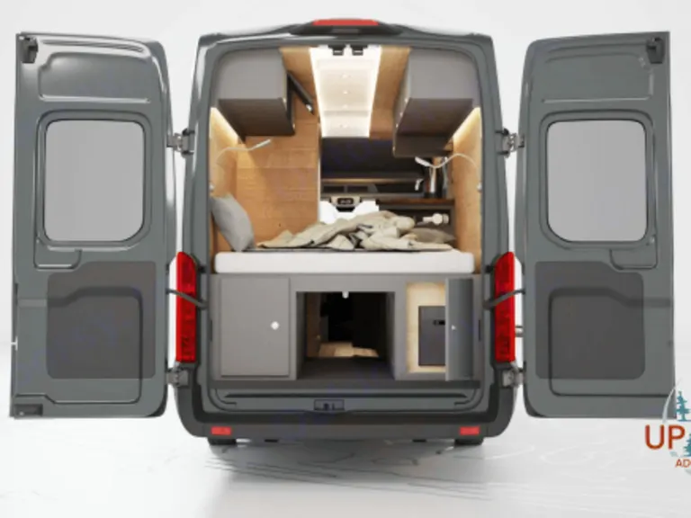Our Up North Adventure Van has an interior shower so you can keep clean no matter what the weather and includes a grab bar/towel bar for safety. The shower has an on-demand hot water system with its own dedicated water tank with the largest capacity available to allow for off-grid camping. Plus, a USA made WaterSense shower head is installed to help conserve water without compromising performance.INCLUDED IN THE BEDROOM