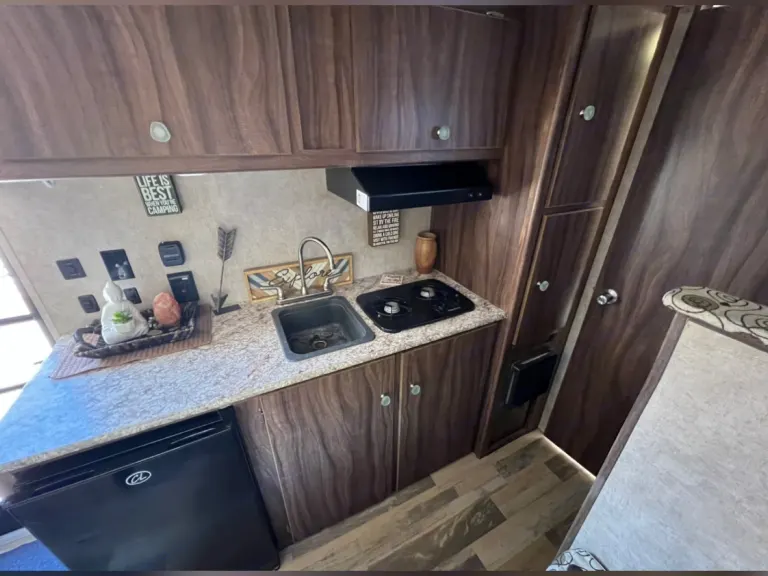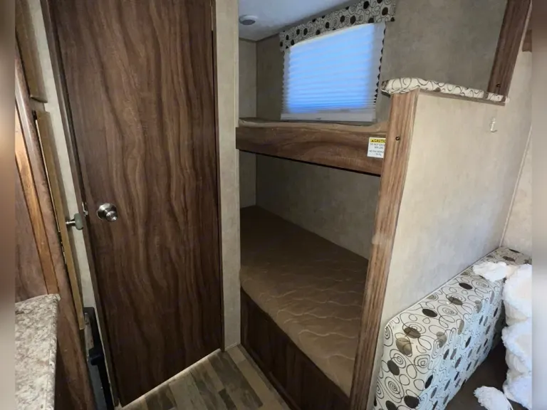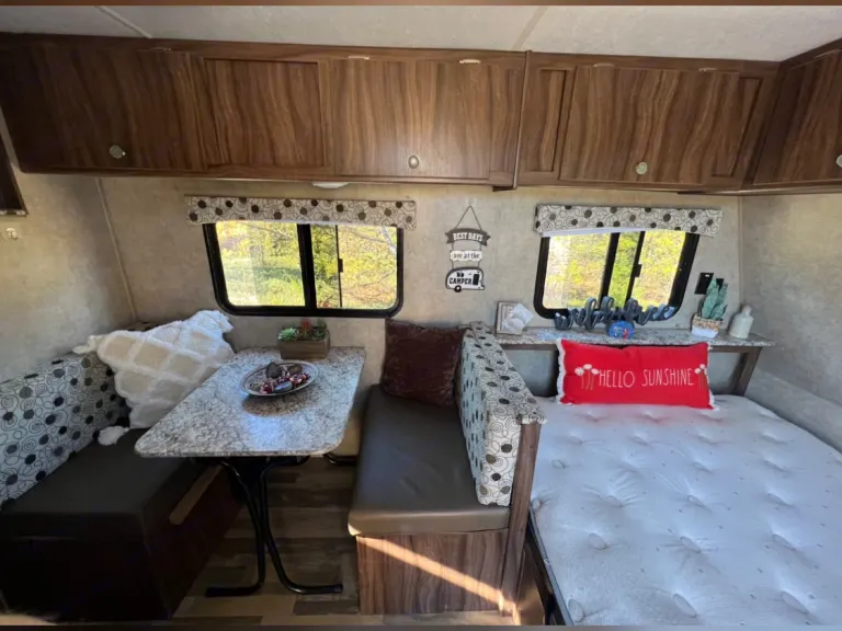**Please read the full listing below and check out our website before reaching out**This almost like new travel trailer “THE Wanderer” wants to remind you that not all who wander are lost!This travel trailer is perfect for a family, a couples getaway or even a local Fall weekend trip with your friends, family or significant other!The Wonderer sleeps up to 5 people but 4 comfortably and is equipped with one full size bed, bunk beds, and a convertible dinette table that can turn into a twin size bed if needed.This camper offers a kitchen sink, a small fridge, a dinette table which can turn into a twin size bed if needed, along with one full size bed, bunk beds, a stovetop to cook, a TV, lights and water, access to outlets, a microwave, a coffee maker, air conditioning/heat and a bathroom which has a shower and toilet.This camper is fully functional with a battery and propane tank with the exception of the following; microwave, coffee maker, air conditioner, TV and access to all outlets. For full use, you would need a generator or a campsite with electrical hook up. We do offer generators to rent! However, we do not provide Wi-Fi or cable for the TV.Each camper comes with mandatory delivery service which includes; drop off, setup and pick up. Disposal of bathroom waste is included, if camper has a bathroom. Delivery fee depends on location of delivery. Contact us for your free quote today!We offer many other additional rental items to make your trip that much more convenient!Get a virtual tour of THE Wonderer to see if he’s the right camper for you! Check out our YouTube channel and find videos on our page for THE Wonderer!To make your trip the best yet, please let us know how many people your camping with so we can guide you on which camper may be better suited for you!What's includedWe do not allow anyone to tow our campers.*We do not offer and/or book campsites nor do we offer a location for the camper to stay at. We are only offering our camper for you to rent only.*Additional info for this camper:ALL campers have lights, water and come with: 1 pan, 1 pot, 1 strainer, bbq utensils, 1 bbq lighter, wine opener, hand soap, sponge, two foldable camping chairs, cleaning supplies/broom and RV toilet paper if your camper has a bathroom. If you are renting our generator, or have access to electric you will be able to use our microwave, coffee maker which is in every camper we have and have access to all outlets.Please be sure to bring your: sheets, blankets, pillows, towels and personal bathroom items.Regarding what size sheets to bring, please be sure to bring the size for the mattress that’s in the camper. This can be found in the description. Camper mattresses are slightly smaller than regular mattresses, but your sheets will still fit!RENT OUR CAMPERS!“WINNER BETHPAGE FEDERAL CREDIT UNION BEST OF LONG ISLAND RV RENTALS 2024 & 2023”MENTIONED IN: