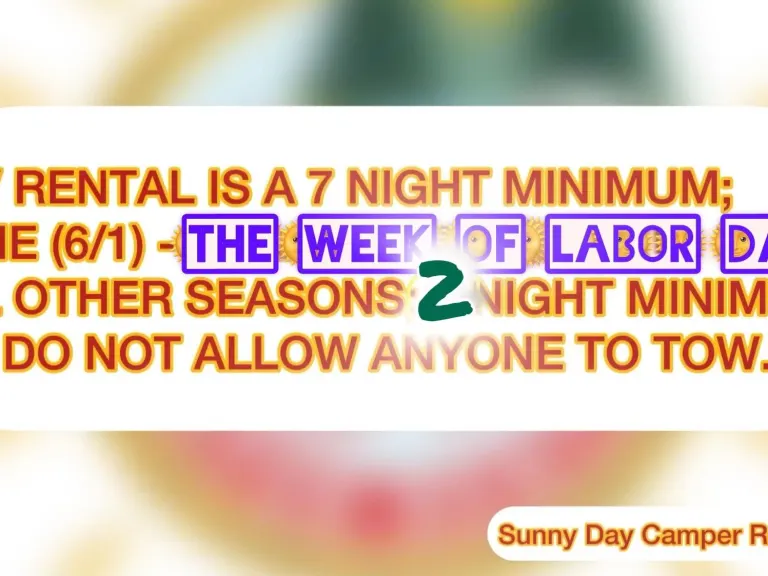 “DANS PAPERS”With Sunny Day Camper Rentals, you’re family to usWe deliver, setup and pick up our campers to your destination.(We do not allow anyone to tow our campers.)We deliver to Long Island campgrounds. We deliver outside of Long Island as well!We require a 2 night minimum during the fall, winter and spring and a 7 night minimum during the summer; 6/1-Labor Day week.PER NIGHT PRICE:$186 per night for the travel trailer