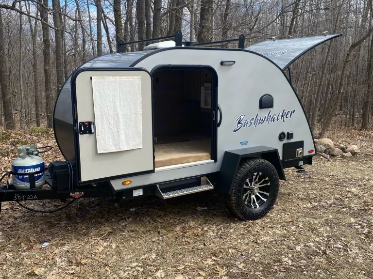 A perfect size tear drop camper that has everything you could ever need for simple yet relaxing camping experience.“Wheel estates” interior gives you all of the comforts of home with heat and ac keeping you cozy at any temperature. Standard and usb plugs allow you to keep all of your devises charged and led lights keep things bright all while being very efficient. The Surprising amount of storage allows you to keep the interior organized and the stereo allowed you to stream your music on the interior and exterior of the camper.Off road wheels give this camper awesome style yet practical grip in any condition. The rear of the camper opens up exposing the kitchen. Here you have a 2 burner stove, a sink with 20 gallon water storage and a cooler making cooking easy. There is also a roof rack on the top “wheel estate” ensuring your kayak or canoe is not left behind.What's includedWe do our best to make sure your camper is equipped with all of the basics you will need to enjoy your time in the great outdoors. Basic cooking utensils will be included (plates, pots, pans, silverware, glasses) as well as paper towels and toilet paper. Propane will be full and power cords will be included in the camper. Camping chairs can be added at no extra charge.Other things to noteThis camper requires a towing capacity of 1300 pounds. Your vehicle must be equipped with a hitch and operational trailer wiring. Many hitch and wiring adapters are available for you to use to ensure safe operation. If you plan on using camper remotely make sure you use your battery power sparingly or have an alternative plan to charge the battery when it becomes depleted (ie generator)