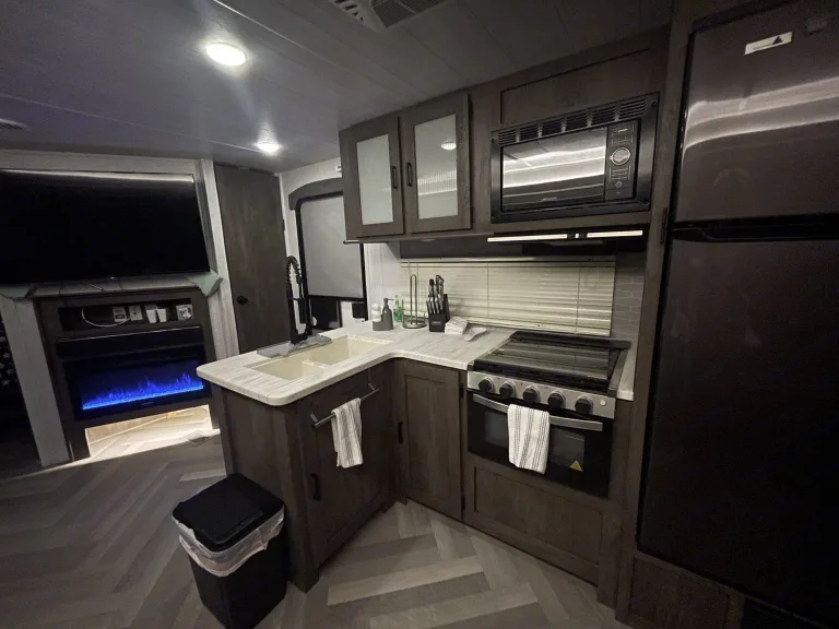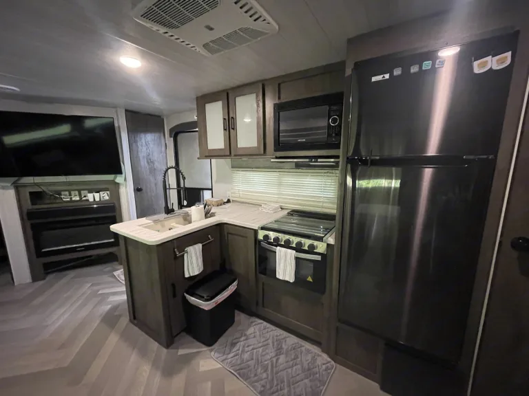 Ms Darling-TON is ready for the races, campground, hunting trip or as an extra room for your In-laws. She is fully equipped for the Whole family including the Fur Babies. The Bunks are big enough for two tweens or your 6'4" buddy What's included•She comes fully loaded with freshly cleaned sheets, towels, pillow, cooking utensils, coffee maker and the sorts. All you need to bring is your favorite coffee, food, beverages, and toiletries. She is stocked with TP, Paper towels, Dish soap. Her fridge is cold, the AC chills, the water heater is ready and her awning provides all the shade you need. RecommendationsShe's perfect for you to tow her to Daytona, Sebring, Homestead, NCAA football parking lots, any of the Springs in FL, Disney, the Keys or any destination in FL you'd like, or we can delivery and set her up at most RV parks in Brevard or Indian River County such as Long Point, Sebastian Inlet, Wickham Park, Ronald McDonald or Vero Beach Kamp.
