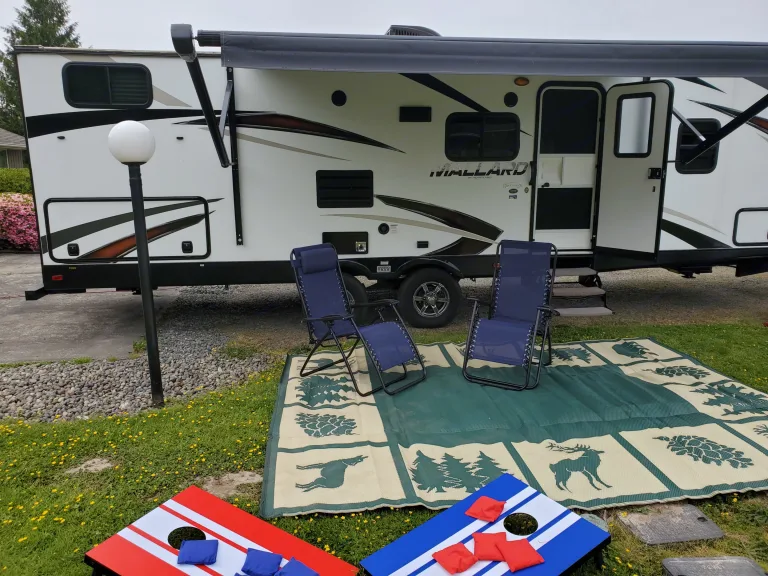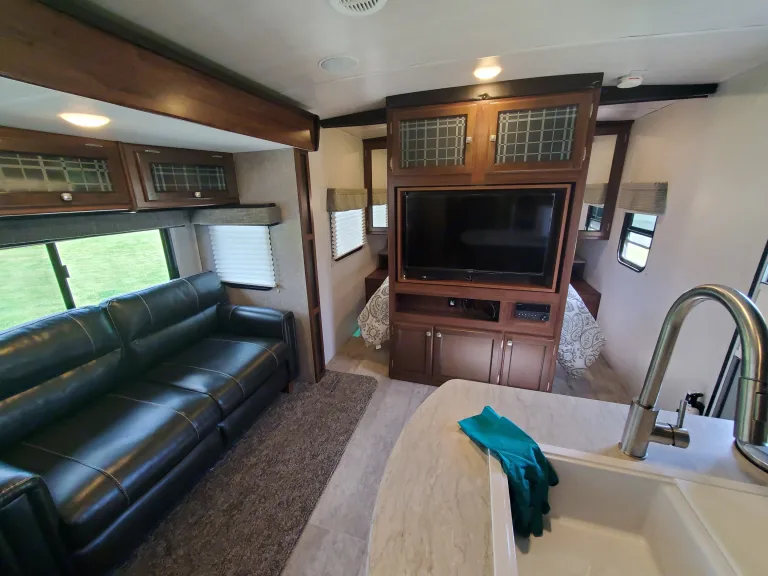 Fully stocked and ready for vacation. This immaculate trailer is ready for your next adventure. Everything you need is right here. All the kitchen gear, towels, bedding, camping games (cornhole anyone?), outdoor chairs and rugs, it’s all here. Outdoor speakers, television, awning, bunk beds, shower, and large slide outs. Roughing it isn’t rough with this getaway pad. Make memories that will last a lifetime.What's includedCamping chairs,  linens which are laundered before use.  Towels,  all the camping comforts. Every rental comes with a complimentary s'more kit,  because hey.....S'MORE!Additionally,  if you're taking the little one with you and you need a pack 'n' play,  I've got that to.