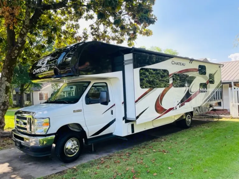 This 33ft Chateau is a family party condo on wheels with room for everyone. The sleeping areas include the following: Double Bed above front cab, One(1) foldout bed form sofa, One(1) foldout bed from dining area-each of these areas are probably better for one adult or two children, 2 single bunks, and a queen bed in the back bedroom. The restroom has access from living/kitchen area as well as from bedroom area. The kitchen area is equipped with granite countertops, electric range, microwave/convection oven, double sink, refrigerator, and freezer. There are three televisions- One(1) in living/dining area, One(1) in back bedroom, and One(1) outside television all with programmable digital antenna channel coverage to pick up the local list of television programs. A DVD/Blu-Ray player is also included as part of the onboard essentials, as well as an ice maker, a 2 sandwich/burger grill, electric skillet, toaster, Keurig, and full size coffee pot. There is also an outdoor hook-up for a gas grill (not included) and an outdoor handheld shower. Besides all of the other extras this Chateau has to offer, this rig is also equipped with electric hydraulic jacks to help keep entire floor stable in RV spaces that are not level, there is instant hot water, two air conditioners/heaters, and comes equipped with all the dishes and cooking essentials needed for your next trip. What's includedFresh linens-blankets/pillows/blankets-are included. RecommendationsStock up your fishing gear and favorite food/drinks to bring along for a family camping adventure that you will surely remember?Other things to note-No pets/animals allowed