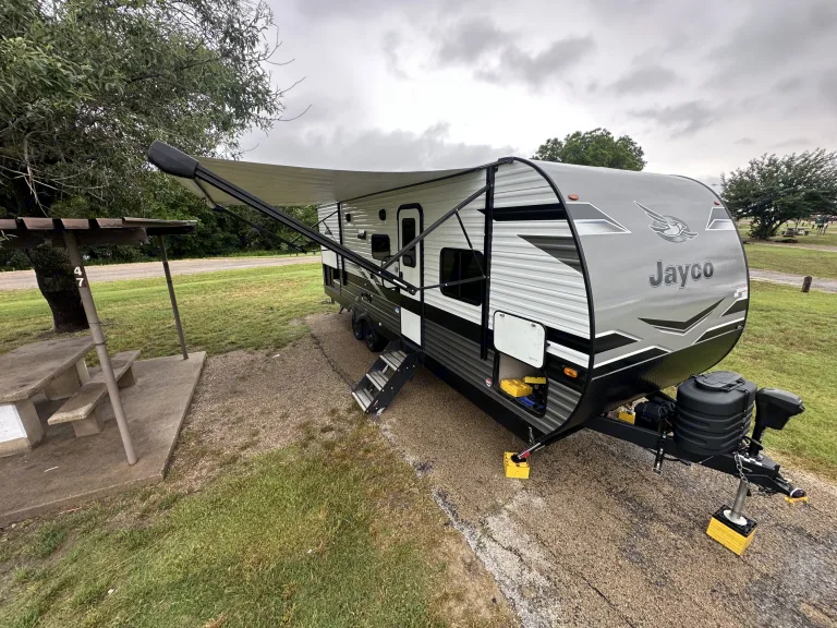 See the overview video at https://youtu.be/Rcdytw86COQJourney is a Jayco travel trailer, decked out with pretty much everything you need, including solar panels, for your trip! At just around 5900 pounds dry weight, this beauty is still towable by 1/2 ton trucks.Our rig includes everything you need and more, for a comfortable and memorable camping experience. You only need to pack food, clothes, and your personal items. We’ve got the rest covered!Includes upgraded mattress in the master for ultimate comfort, two full size bunks that can comfortably sleep two people each, an outdoor shower, outdoor kitchen (sink and mini fridge) with the option to add-on a Blackstone Griddle, lots of entertainment options and more!