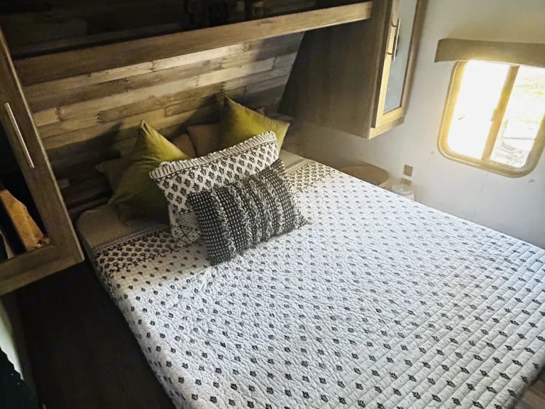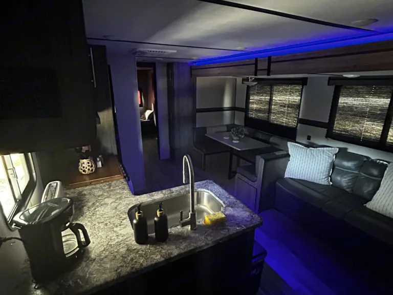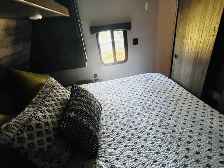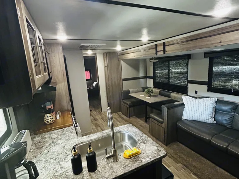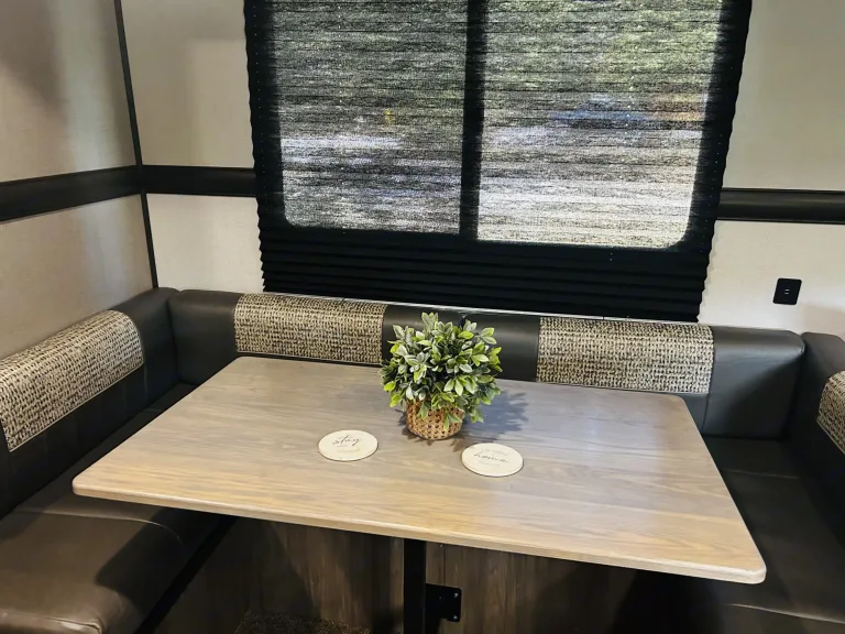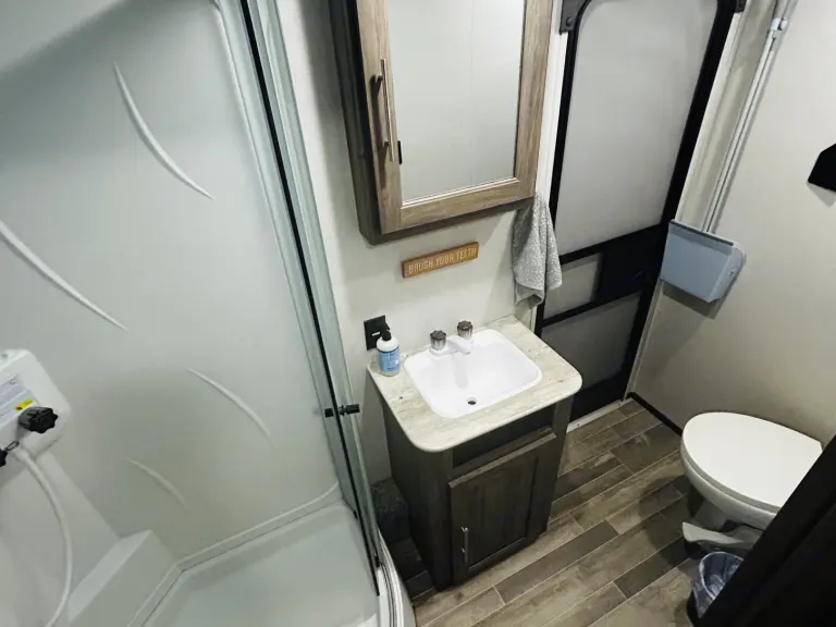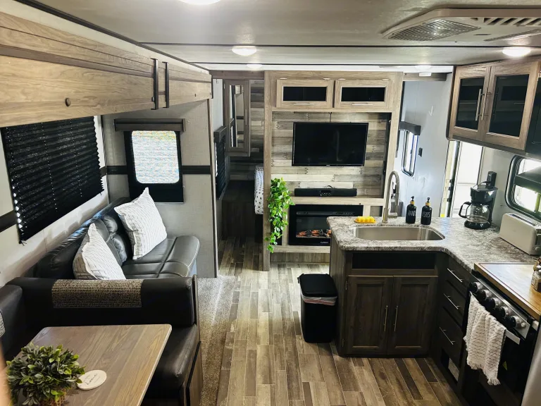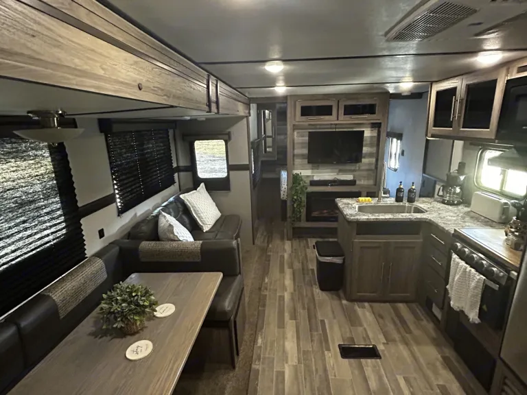 Get ready for an unforgettable trip without the hassle! Our camper expands to offer an amazing amount of room, thanks to slide-outs in both the main living area and the private bunkhouse. The spacious bunk room is perfect for kids and teens, featuring three spacious bunks and a dedicated sofa area. Adults can retreat to their own private master suite with a relaxing queen bed. A table and sofa provide a comfortable gathering space in the main living area. This rig is loaded with everything you need, including a large walk-in shower, tons of storage, and basic camping supplies.Just tell us where you're going—we'll deliver, set up, and take it all down for you! What's includedStocked with plates, cups, utensils, cookware • Basic cleaning supplies • Bath towels and bed linens • Outside rug • Table cloth for the picnic table (if applicable) • Sleeps 8Indoor & outdoor smart tv