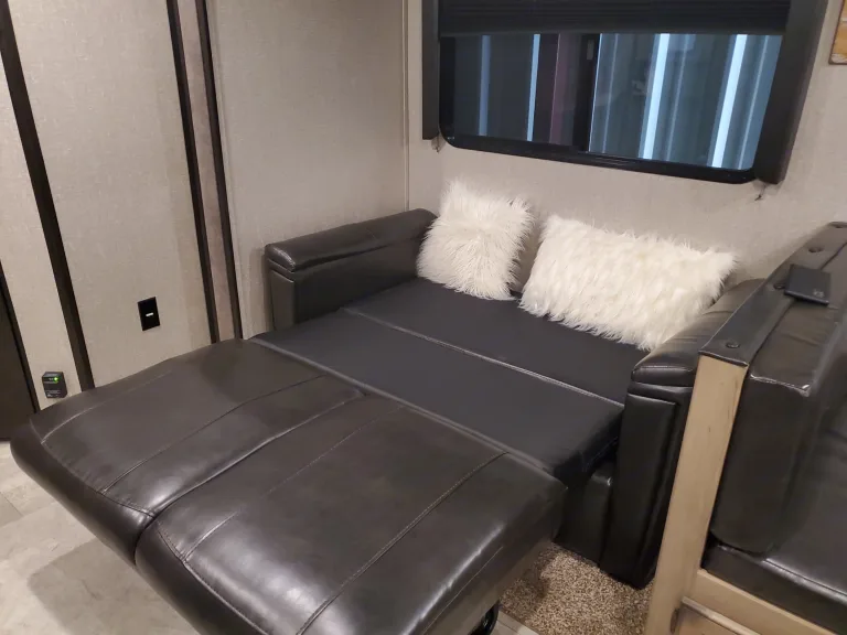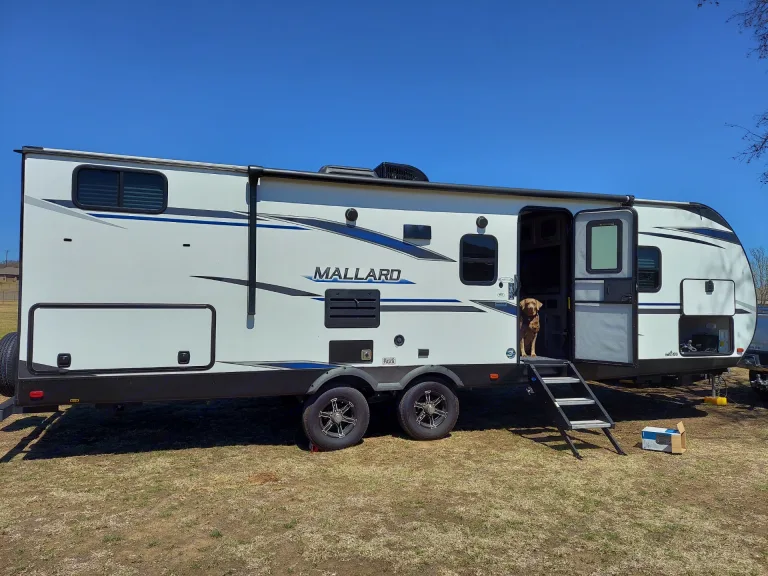 Our goal is to help you have an easy, safe & FUN camping experience.Spacious and contemporary with lots of sleeping space is what you think when you see this 2021 Mallard travel trailer. This trailer is easy to use, and it's equipped for campers at all experience levels. It is a great friends and family getaway travel trailer, with a king bed in private master with doors, and double bunk beds - this takes glamping to a whole new level! The dinette can be turned into an extra bed and the couch converts into a full bed. We love newbies, and we're ready to help you navigate the wonderful world of RV camping.