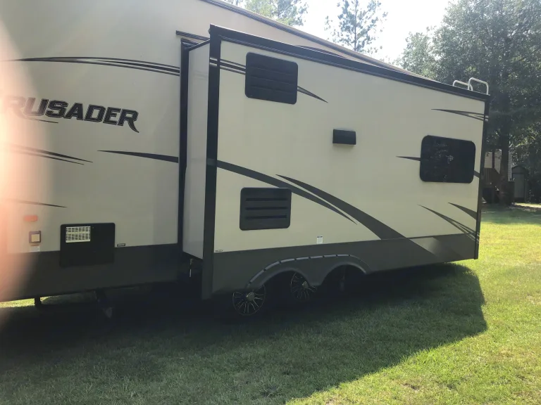 Comfortably large 5th wheel camper with a kitchen island providing counter space to help in preparing meals. We have a large pantry for lots of non-perishables and double sided refrigerator/freezer to reduce amounts of trips to grocery stores. The living room has a fireplace to relax in front of while watching the 50” TV. A linen closet is in the bathroom as well as a sit down shower. The bedroom has a large closet and a dresser. A washer/dryer combo is in a small closet area in the camper. This camper has an outside kitchen with another refrigerator that we use for drinks. Lots of storage under the camper. What's includedPot, pans, plates, glasses, linens, coffee pots, can openerRecommendationsWe love camping at different campgrounds along the Gulf of Mexico. Cheaha State Park in Alabama is another beautiful campground. The hill country of Texas along the Guadalupe River is another wonderfully, peaceful place to camp.Other things to noteNo pets, tailgating, festivals or smoking in this camper.