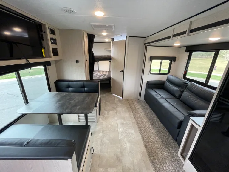"Shirley" is an Apex 256BHS Ultra-Lite travel trailer and she is perfect for any type of trip! It has a full kitchen, full bathroom with shower, refrigerator, heater, a great stereo system. This trailer sleeps 7-8 people very comfortably and even has two large full bunks! This trailer is perfect for any family or even two families. This trailer is lite weight and can even be towed by a 1500 pickup truck like a Ford F-150. We have been renting RVs for over 12 years and strive to have the newest and cleanest RV rentals in town.