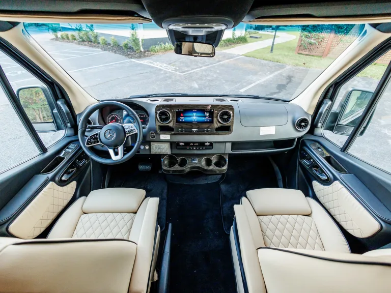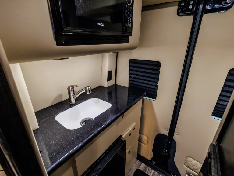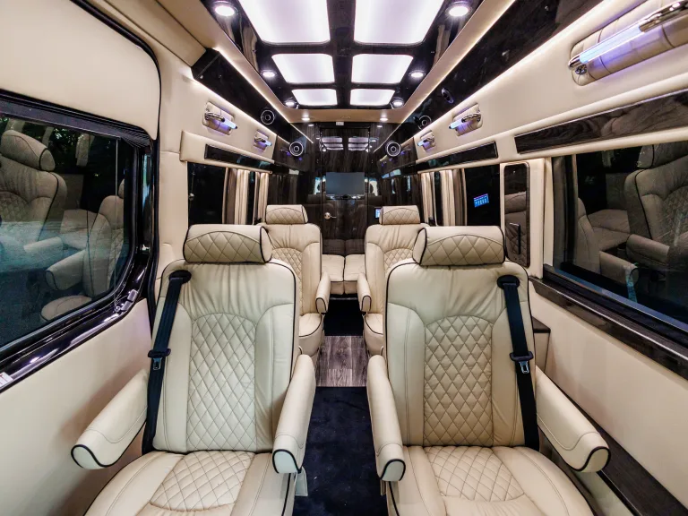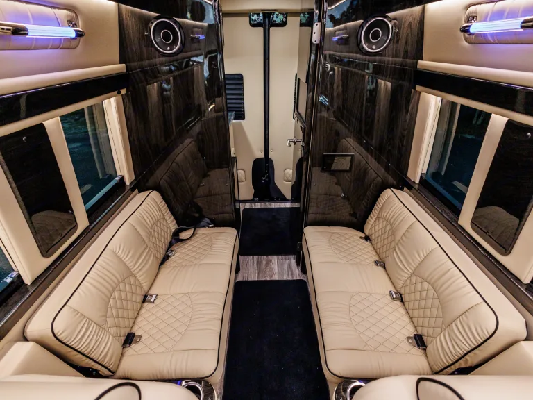 Our most versatile Sprinter, the Ultimate Coach comes fully equipped with all the amenities and is designed with comfort, luxury, and style in mind. The beautifully handcrafted and custom interior will make you think you’re on a private jet. Ideal for busy executives with a demanding lifestyle, the Ultimate Coach is perfect for getting more done on the road, entertaining business clients, using for a night out, or enjoying family vacations. Fully equipped with full RV hookups as well as a refrigerator, microwave and toilet. Enjoy luxury at its finest!