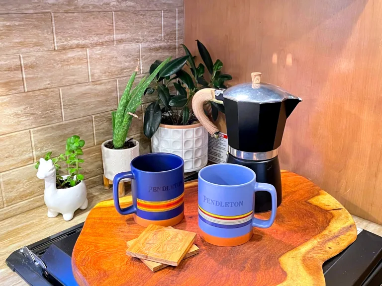 - Picture staging - some items are not included but were for decor to make the pictures look nice, plants and ukeleles are not very practical when driving. :) Coffee setup is included.