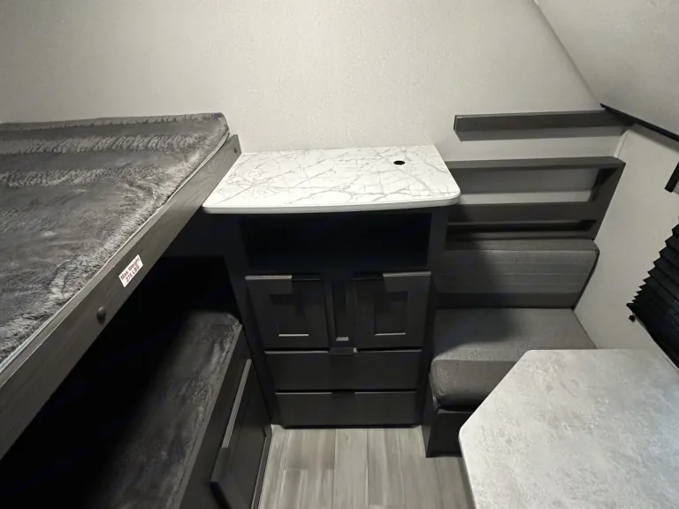 Everyone is going to love this Travel Trailer with a private bunkhouse! There are triple bunks, plus a dinette under one bunk for the kids or your friends to enjoy their own privacy, sleeping space and sitting area. You'll enjoy having your own front private bedroom, and there is a booth dinette and sofa within the large slide out for more seating and sleeping space. Meals can be prepared on the three burner cooktop indoors, or outdoors on the outside griddle.