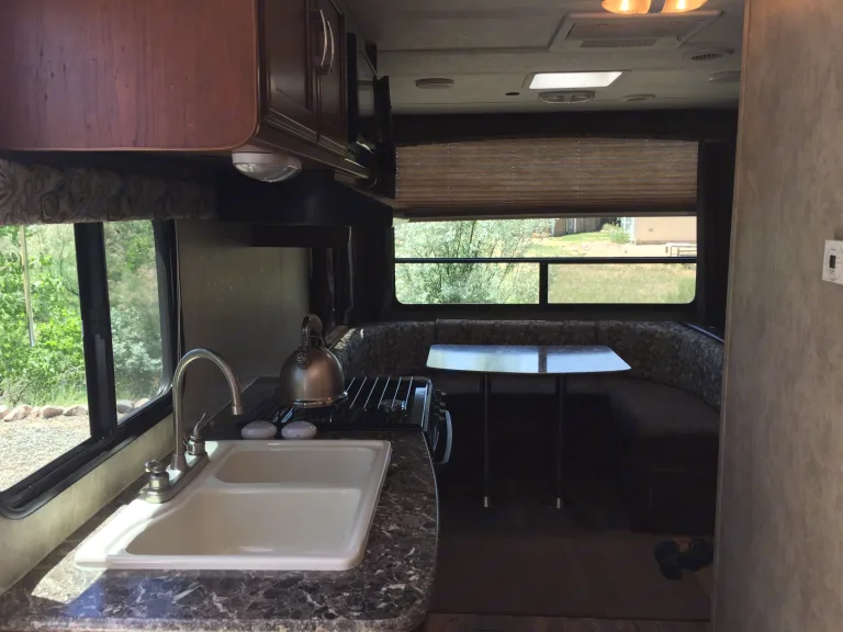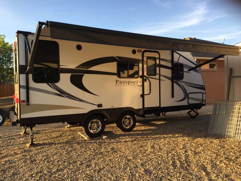 Comfortable and cute travel trailer. The standard mattress was replaced with a high quality mattress and fits a couple well. There is a privacy curtain if you need to convert the table into a sleeping area for kids or an extra friend. The trailer has solar panels to recharge batteries so you can disperse camp. Small generators can be included if requested ahead of time and generator limitations are understood. The Tandem axle can handle dirt roads and small obstacles but the trailer isn't meant to be pulled on 4 wheel drive roads. What's includedSilverware, cooking utensils, and a durable plastic 4 piece dining set. Pots, pans, mixing bowls, cutting board, great knife set and a few spices are provided. A 4 cup automatic coffee pot as well as a mini coffee press and cups are provided. All cleaning supplies and linens are provided. RecommendationsThe trailer can be taken on dirt roads, but make sure you close the windows as dust will settle inside. With the windows closed though, the lower cabinets where pots and pans are stored will get dusty. As long as there is sun, the solar panels will provide enough power for the small coffee pot, the ceiling lights, water pump and heater. The solar panels will not power the air conditioning and the extra outlets. If you use our generators, know that generators are temperamental and should only be run at short intervals. When dispersed camping, the two of us can usually get by for 3 days without needing to dump the grey and black tanks or fill the water tank. We are able to supply two extra water containers. I find that showering uses the most water. Other things to noteWe are flexible on the pick up and drop off times.