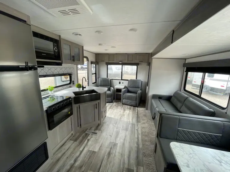 2022 Coleman Dutchman 264RL comes with all the comforts of home. 2 recliners, Queen Bed, couch that folds into a bed and a kitchenet that can convert into a bed. The beds come with the linens already on them with pillows ready to go. Fully stocked with kitchen supplies includes dishes, pots and pans, and utensils, single serve coffee pot and k-cup. We offer delivery and hook up and setup. Delivery charge changes with the mileage.What's includedThe beds come with the linens already on them with pillows ready to go. Towels and wash cloths, 1 roll of paper towels, 2 rolls of toilet paper. Fully stocked with kitchen supplies includes dishes, pots and pans, and utensils, single serve coffee pot and k-cup.