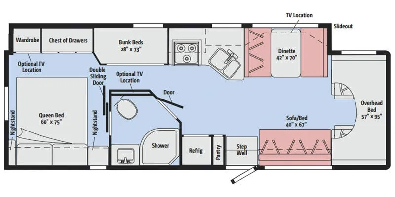 Other things to noteThis is the perfect rental for couples, families and groups of friends. We don't allow rentals for bachelor parties, tailgating, concerts or other similar events.PLEASE NOTE: While the use of the generator is permitted for your convenience while traveling. It is expected that you camp at a site with electric hookups and not rely on the generator for your trip. No discounts or refunds in the event of generator failure.We ask that renters bring the RV back clean and in order (i.e. dishes, pans and utensils clean and put back as you found them, floors swept, food items removed, trash removed, holding tanks emptied) or an additional fee of up to $50 may be applied.Propane tank and fuel tank should be full upon return, or the cost of the fuel and a $20 service fee will be applied to the security deposit.