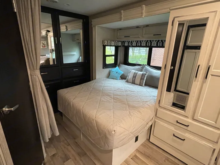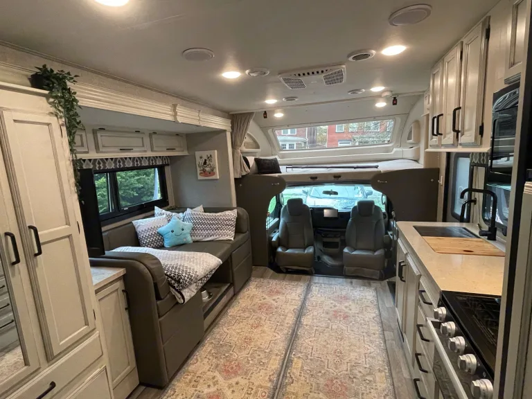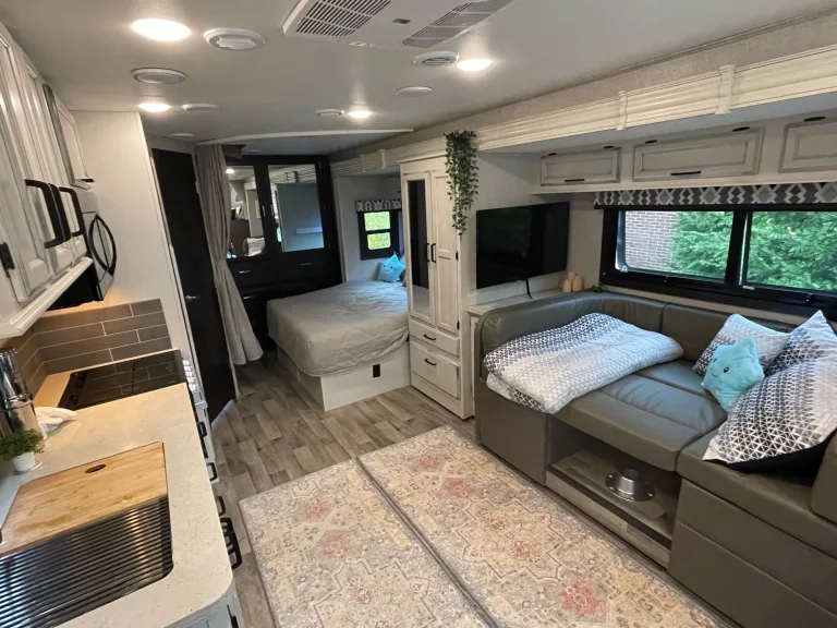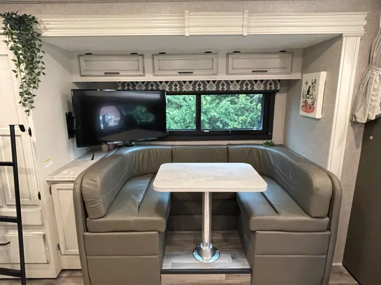 Still new, Perfect size and so clean! Miles is the best camper for anyone looking to have an adventure. Great for weddings, football games, family reunions, cross country road trips, visiting relatives in another state, or RV camping in campground with full hooks up or “Boondocking” Miles is also just under the correct size nessary for use in national parks. Worry free traveling! Whether this is your first time or you are an experienced RVer this size is easy to drive, park and enjoy the outdoors equally with enough space to have fun even if the weather is less then ideal. With the full wall slide-out the interior transforms from comfortable to downright spacious. Entire driver side wall slides out to provide tons of extra sq/ft as well as a comfortable Queen size bed. The Dinette collapses into a full size bed and the Queen bed over the cab features a massive window cozy and perfect for stargazing. Outlets and USB ports available at every sleeping area, inside the bathroom and kitchen area also. Fully equipped kitchen with everything you need to make your favorite meals. Clean and bright Full sized bathroom with a large shower. Includes outdoor shower. Perfect for cleaning off the dirty feet and hiking equipment. Tons of storage around the outside of the RV and hitch available for bike racks. Please ask about available equipment for rent along with the RV, such as Blackstone grill, kayaks, bikes, camp chairs, and more! We adore our RV and you will too!