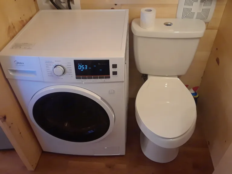 The compact design maximizes the utility of every available inch of space and features a galley kitchen with an (almost) full-size fridge, a gas range, and a large farmhouse sink. The tiny bathroom contains a surprisingly spacious 36" shower stall, a standard low-flow flush toilet -AND- a compact combination washer/dryer (No laundromats or communal laundry rooms for the Happy Campers who choose Little Red)!