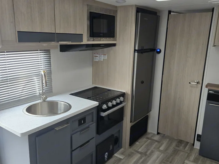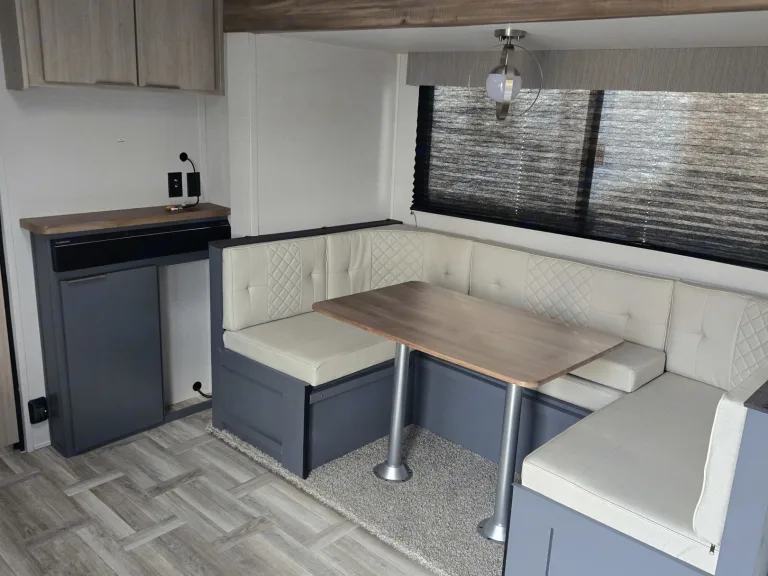 Our Couples RV Trailer is fully stocked, includes linens, dishes, cookware, and coffee maker. Camper has a queen bed and a U-shaped dinette that converts to a bed for small children. This Rental is for Delivery Only. We will deliver, set up, and pickup at the end of your stay. Everything is cleaned, sanitized, and ready for your use.What's included• Clean Linens