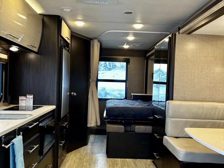 Our RV has a super slider which means the whole driver side pops out making it very roomy once parked.