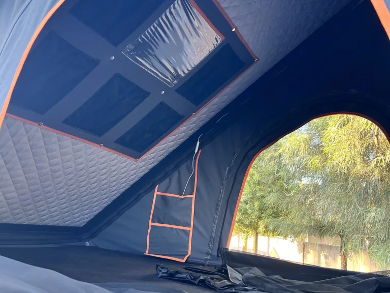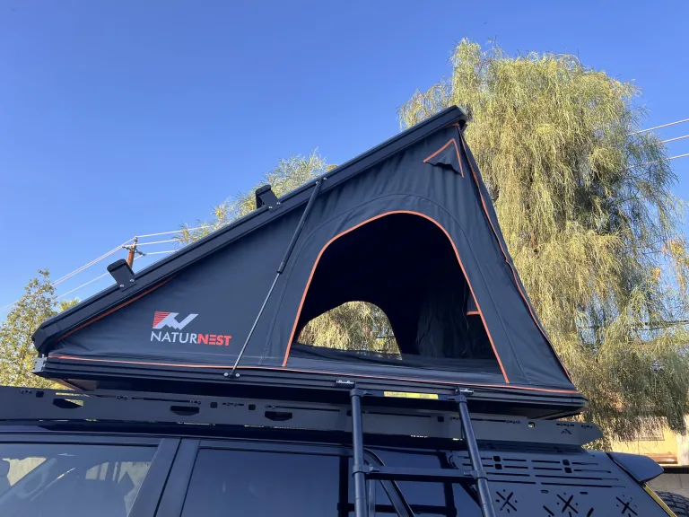Camp-Ready Features:Rooftop Tent: Quick setup, sleeps 2 comfortably with included bedding.