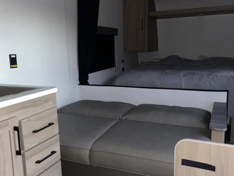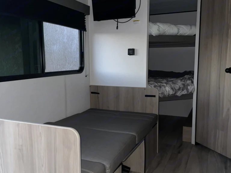 Brand new Trailer, pillow topper on bunk beds and queen. Smart TV with basic cable hook up. electric awning, hot and cold water. Has couch and dining area, propane stove, freezer and refrigerator. Large restroom.