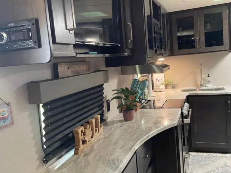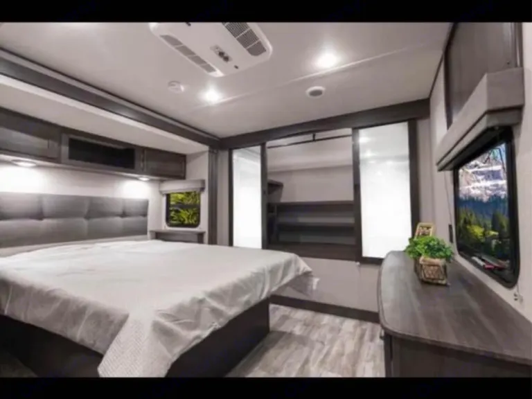 This camper is very spacious! Plenty of counter top space for cooking and beverages! There are 2 Roku TVs! There is a huge closet in the master with a 6 dresser drawer. The shower is not a corner shower either. We can provide you some camping chairs and towels and linens! We also provide a small ice mackerel that goes on the countertop if needed! We hope to have you as a guest! Reach out if you have any questions! What's includedWe can provide camping chairs, linens, and toiletries! Other things to notePlease treat the camper as your own. Do not break anything. Thank you!