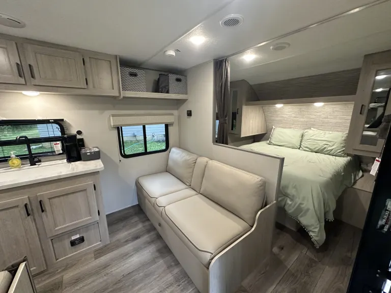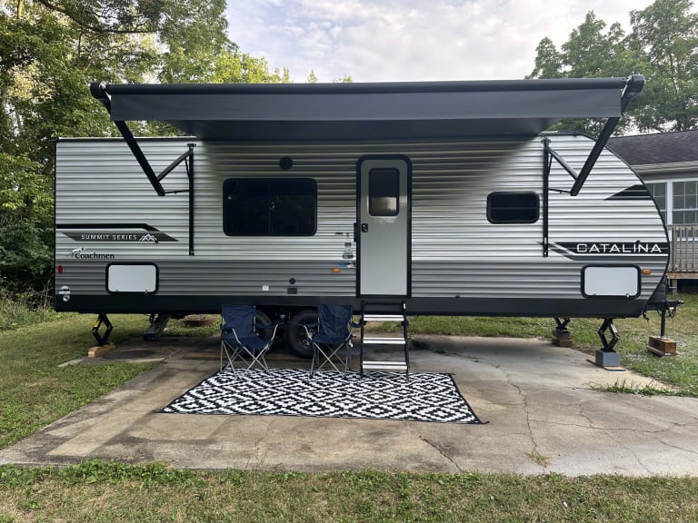 Are you looking for the perfect getaway stay? You have come to the right place! A cozy camper trailer that can comfortable fit up to four guests. You have the amenities of a home, away from home! This camper is the perfect couples hideaway next to a lake or perhaps a trip to the local fair. We are sure you will enjoy a little local oasis wherever that may lead you! What's included• Queen Bed with bedding