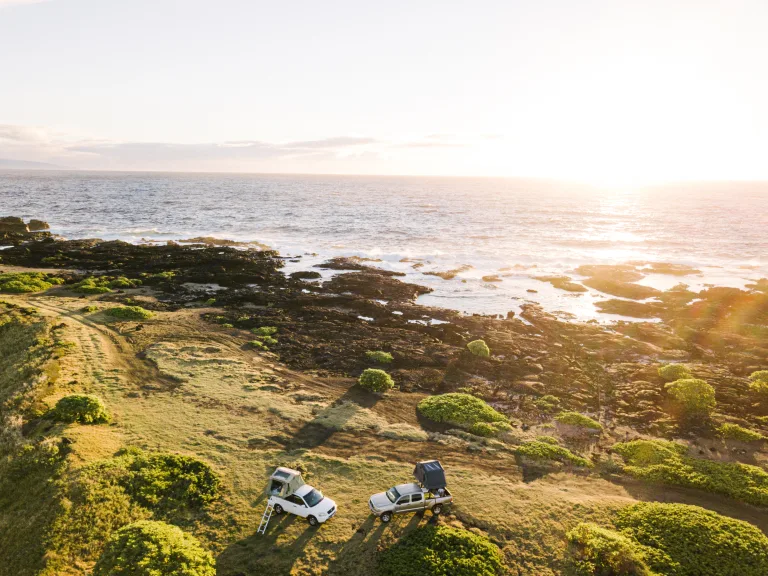 Aloha! We offer fully outfitted 4WD vehicles with Tepui Rooftop Tents to carry you to all of the treasures Hawaii has to offer in comfort. All you need to do is buy your favorite foods to eat by the campfire at the beach! Includes: cooler, 5 gallon water jug, 2 burner stove, propane, linens and towels, table and chairs, full cooking and kitchen set! Just provide the food and fun! All pickups and Drop offs are being done at either the Hilo or Kona (KOA is limited so please ask!) International airport. Mahalo