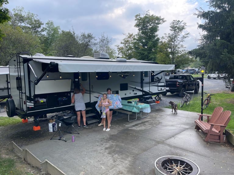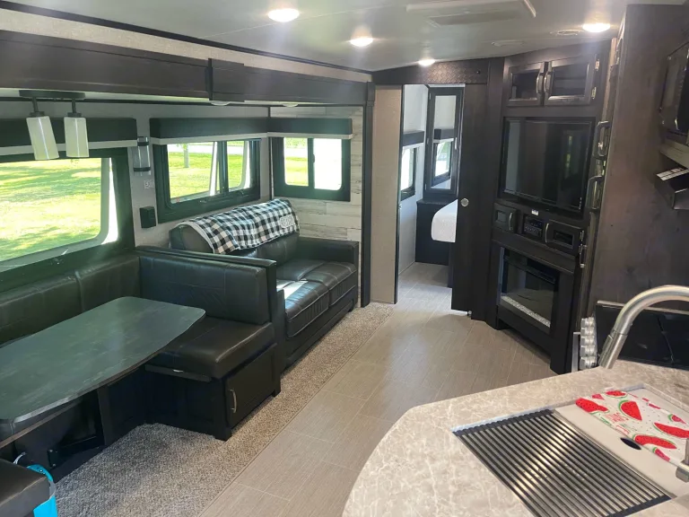 2020 Jayco Whitehawk 29BH. Has 2 TVs, skylights, fire place, comfortable bathroom arrangement. Bunkhouse is in the rear with master sweet in the front with separate entry. Nice layout for a family with kids or a couples weekend.What's includedEverything to setup camper (leveling blocks, cables, hoses, jacks, etc). Silverware, cutlery, toaster, coffee maker, pots and pans, out door lights, chairs, garbage can, camp chef cooking system (3 burner with flat top and grill).Other things to noteNo festivals