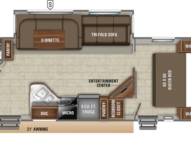No cooking inside like bacon or anything that will smoke and cause a smell. Outdoor kitchen grill connected to the camper shouldn’t be used either. We provide a Camp Chef cooking system which is a more pleasure to cook on anyways.