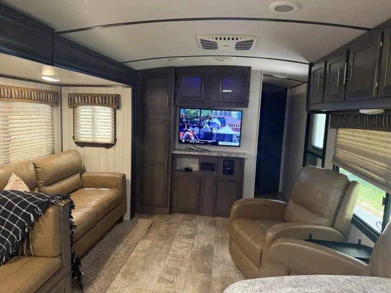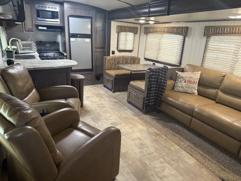 Enjoy your next camping trip in the “SUN” a truly gorgeous Camper with room for the entire family. This Camoer features a queen bed in the main bedroom a fold out sofa bed and a convertible dinette booth giving you room for up to 6!! You will truly enjoy your stay in this rig. We provide bedding for two beds all cooking utensils, pots, pans, coffee maker cups and dishes happy camping!What's included• Cooking utensils, rv only toilet paper, pots pans and dishes, coffee maker and cups toaster oven and bedding for 2 beds Other things to notePETS welcome !!!