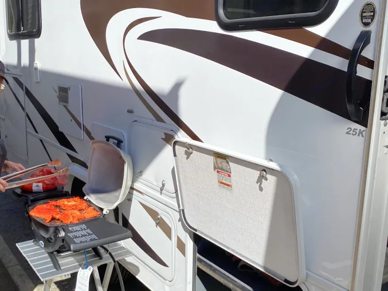 - **Sleeping Comfort:** Accommodates up to 6 travelers with a roomy rear bedroom, cozy cab-over bunk, and convertible dinette bed.- **Kitchen Convenience:** Fully equipped kitchen with a stove, microwave, fridge, and sink for delightful meals on the go.- **Private Bath:** Onboard bathroom with toilet, sink, and shower, offering privacy and convenience.- **Entertainment:** Stay entertained with a TV, DVD player, and outdoor stereo system.- **Ample Storage:** Interior and exterior storage ensure all your essentials have their place.- **Outdoor Awning:** Enjoy outdoor living under the retractable awning.**Specs:**