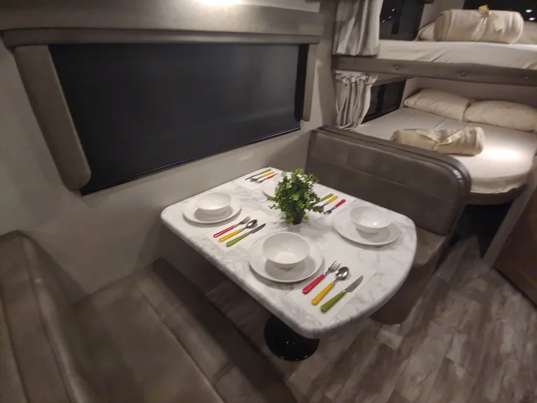 • Bed 2: Dinette that can be converted into a bed (One small adult 5 feet 8 inches)