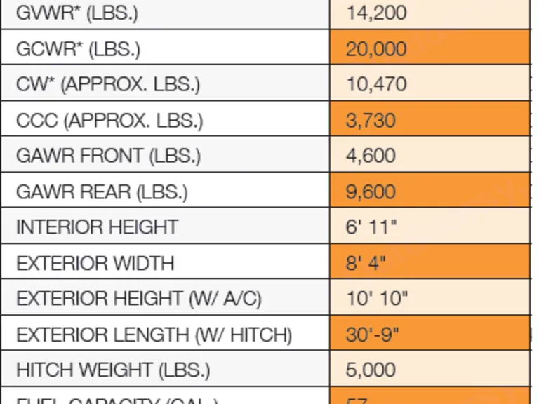 - Fresh water: 50 gal