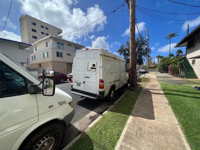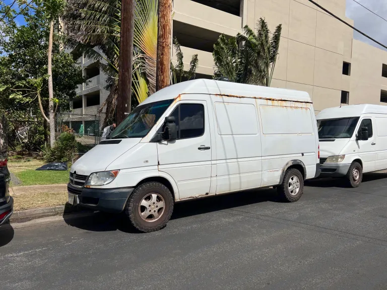 Great budget choice with all bells and whistles. Check out my ig I have done 500 rentals at hawaiivanlife Has hot shower 16 gallon 6 gallon faucet, led dimmer lights, 6 foot headroom, full/queen bed, fantastic fan, campchef oven stove, storage for many surfboards. Solar and auto charging system with many usb and an inverter to charge your tablet or computer This van does have some rust dents and scratches and has been rented many times but is a great budget option