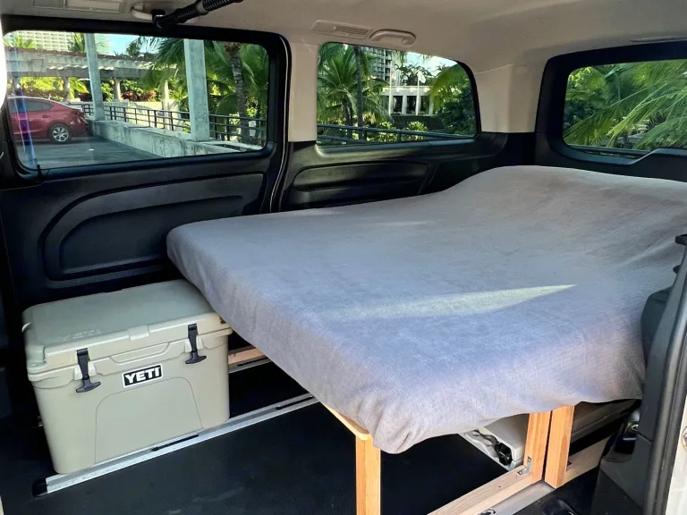 Koholā (Hawaiian for whale) is ready for your next camping adventure on the beautiful island of Oahu! This is a Metris van, or as some people call it, the “mini Sprinter”.