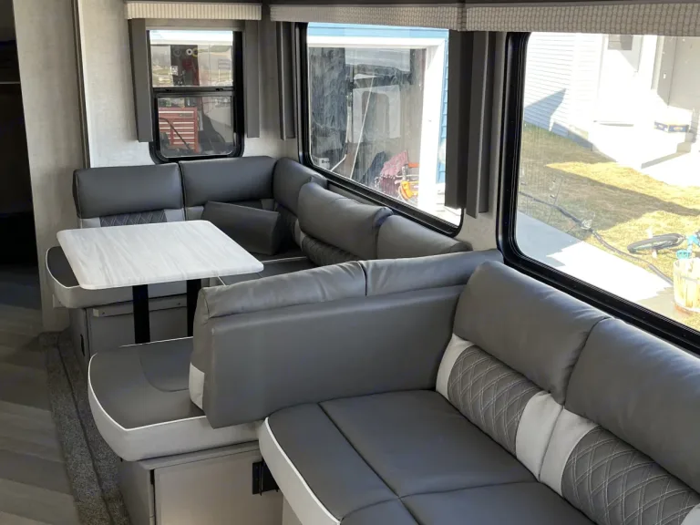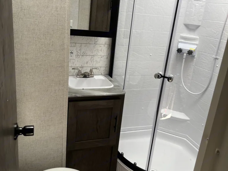 6 total beds can sleep 10 campers. The center dining area and fold-down couch convert to 2 more comfortable sleep areas.Our ever-growing YouTube Channel has all the How-To Videos! https://www.youtube.com/@DakTexRVRentalsThe large bathroom and full stand-up shower separate the master bedroom and the large kitchen/dining area.Our camper is pet-friendly, and kid approved! And we love that the kiddos have their own sliding door in the rear bunkhouse to their room in the back instead of just a curtain. The rear bunkhouse has folding upper bed decks as well as a sofa that folds into another Queen bed!The central heating and central air conditioning will keep the entire camper warm on the cooler nights, and perfectly chilled on the hot Summer days.