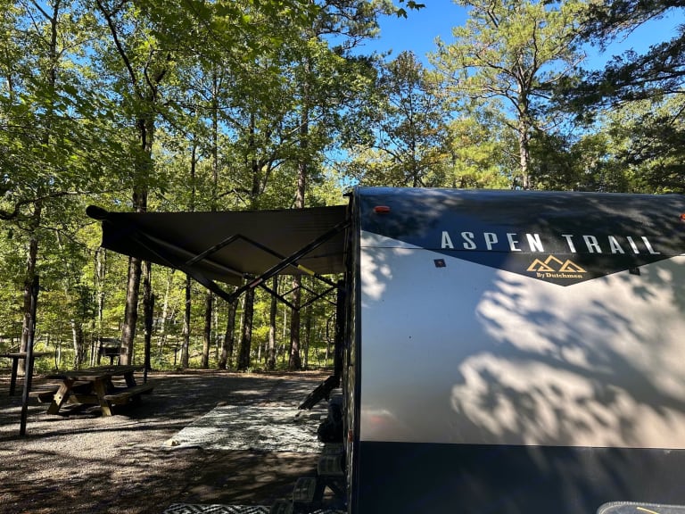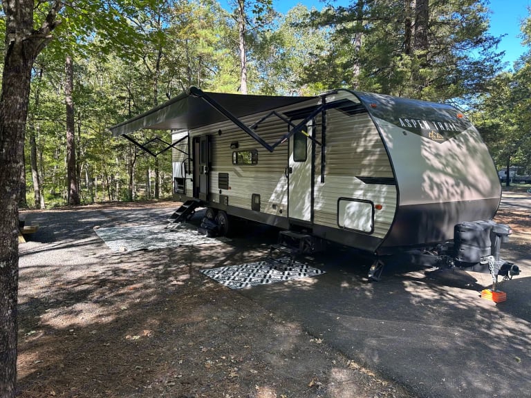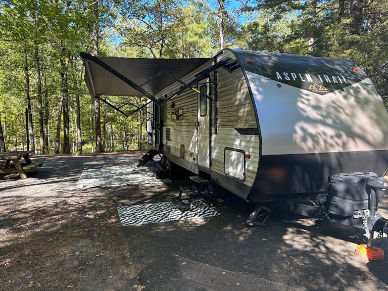 This 2021 Aspen Trail Travel Trailer is one of a kind! A queen bed, full sized bunk bed, and the option for both the couch and table to be made into more sleeping space, this trailer has the potential to sleep up top 10 guests!This unit is equipped with everything needed for either a fun weekend getaway or a long week to disconnect! From a warm fire place to a cold A/C unit made for those southern summers, this trailer can handle any climate you are looking to camp in. What's includedInside: Fresh linens, towels (beach and bath), extra bedding for table conversion and couch, assortment of pots and pans, coffee maker, metal eating utensils, cooking utensils, plastic plates, plastic bowls, and plastic cups.Outdoor: camping chairs, outdoor mat, string lights, extension cords, fold up table.RecommendationsDelivery is highly recommended! Renter ability to tow is case by case and requires at minimum a 3/4 ton truck to pull.List of State parks recommended (but not limited to):