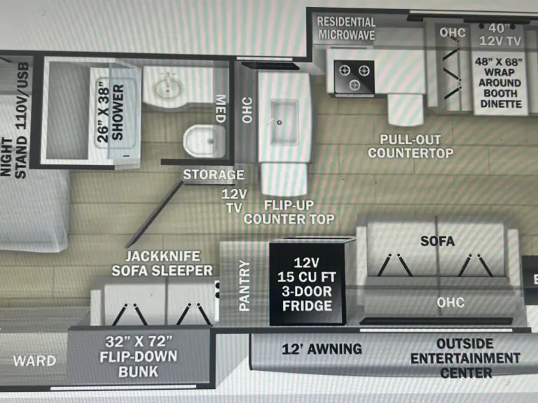 Our unit is built to make family memories. Class A units provide a spectacular view for all the occupants traveling down the road. Comfortable leather seating with space to spread out while traveling. TVs in the living area and bunk area to keep kids entertained while buckled in and traveling. This unit also has an extra large fridge to keep everyone fed and hydrated. When you reach your destination, open the two slides to fully take advantage of this spacious unit. It comes with an outdoor TV and speakers to watch your favorite show or listen to your favorite music while playing a game or eating dinner outside. What's included• Bed linens