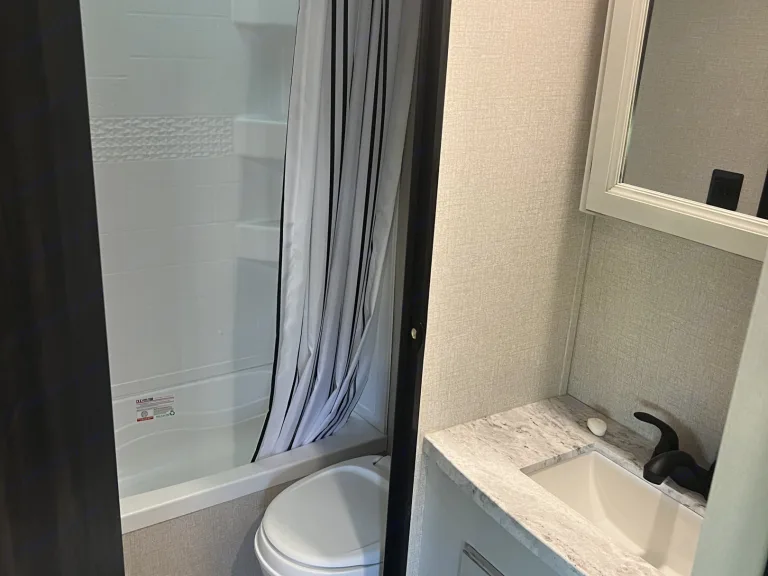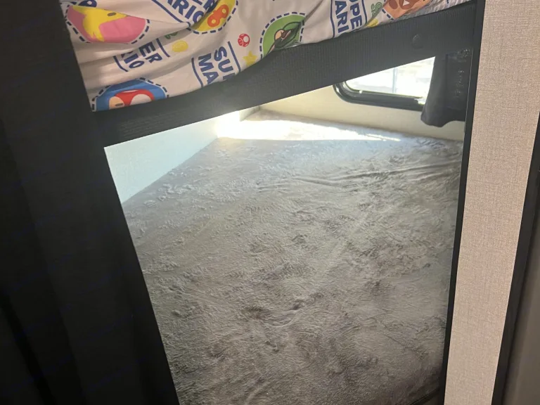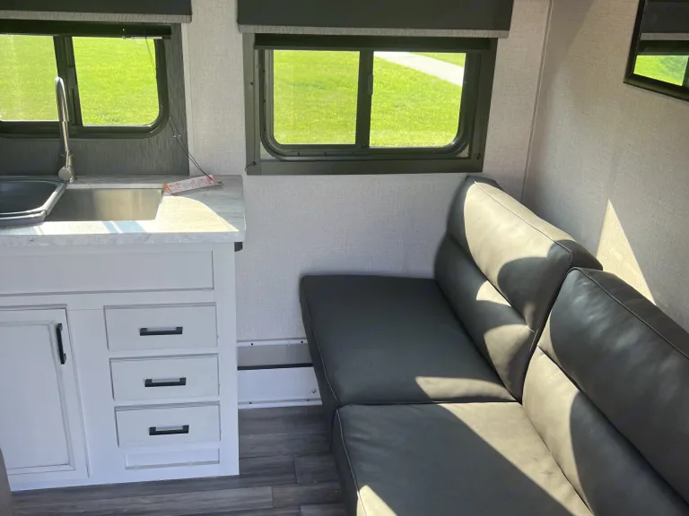 Delivery only, available within 80 mile radius of Hudsonville, MI. Beautiful family friendly RV with a separate bedroom and upgraded queen size mattress, full size bunks, pull out sofa and folding dinette. Indoor/outdoor stereo. Cookware including electric griddle, plates, cups and utensils are included with rental. Bring your own bedding linens (sheets/blankets/pillows). Lots of storage available so you can have a clutter free camping trip! Tank clean out included with rental as long is it's available at your camping location!