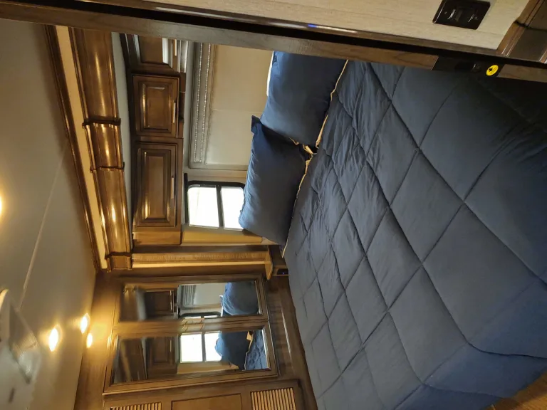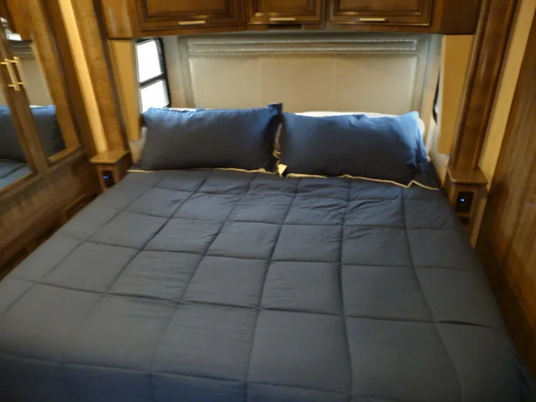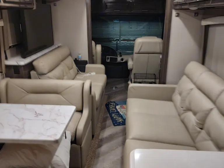Opposing sofa living room layout, drop down bunk, hide-a-bed sofa, king bed in bedroom.Lots of living space, great for traveling. Our family of 6 travel comfortably. Sleeps at least 7, maybe 8-9 depending on the sizes of kiddos.340hp Cummins diesel. Better fuel economy than gas motorhomes, air ride suspension, exhaust brake, super quiet traveling down the road since the engine is in the rear.Have questions? Just let me know!What's includedLinens & towels available (see "Add ons"), camping chairs, smokeless fire ring, exterior rug, coffee maker, cooking utensils and pots/pans.Has 4 total TVs, lots of sleeping options, a combo washer/dryer and plenty of amenities.Have a question? Just ask! Odds are we can likely accommodate your needs. RecommendationsContact me with any and all questions! Other things to noteAbsolutely no smoking.Pets are welcome if they are well behaved (e.g. won't chew up furniture, etc.).This is a pretty decent sized RV. Experience driving something like it is helpful, but not absolutely required. I can take you on a bit of a practice drive if you like.