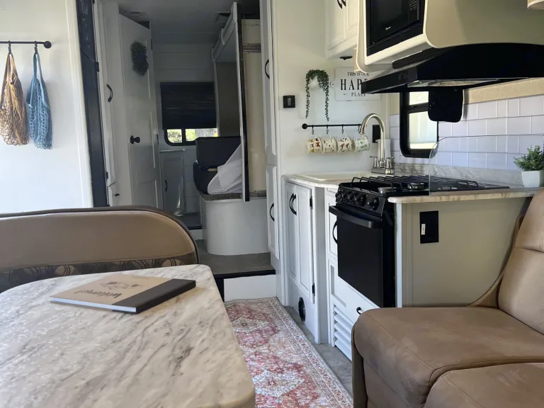 Welcome to The Cozy Coachmen! Our RV is renovated to feel like your comfy cottage on wheels. With the ability to sleep 8 people comfortably a full kitchen and bathroom amenities it’s easy to bring home whenever you need to go.A pullout offers one queen size bed, the dinette conversion can sleep two, a fold out couch can sleep two and the loft bunk also sleeps two. Sleeping a total of 8.The kitchen comes stocked with all the dishes and utensils for 8, a coffee machine, and pots and pans needed so all you need to do is bring the food!Plenty of storage below allows you to pack all your gear for hiking, climbing or whatever adventures you have planned. An additional cargo carrier can be attached to the hitch upon request to help bring your bikes along for the ride too!What's includedcamp chairs, camping table, cookware, and utensils.