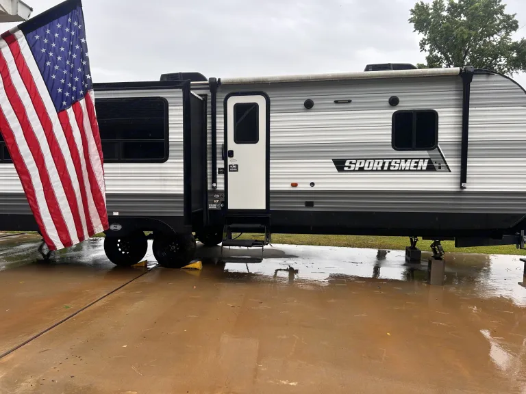 Spacious • ComfortableWelcome to the Bald Eagle Basecamp, a 2022 KZ Sportsmen 303Qbse — the perfect getaway trailer for couples, small families, or weekend warriors who want space, comfort, and reliability on the road. Whether you're camping at the lake, exploring Texas parks, or relaxing at a local RV site, this travel trailer offers all the essentials with none of the hassle.Comfortably Sleeps 5Private front bedroom with a walkaround queen bedJackknife sofa and U-shaped dinette convert into additional sleeping spacesOpen living layout with plenty of floor space and storageDual A/C Units for Maximum Comfort:Stay cool and comfortable with two powerful air conditioning unitsBuilt to handle the Texas heatFull Indoor Kitchen:3-burner stove, oven, microwave, and large refrigeratorStocked with Basic cookware and utensilsFull Bathroom with Indoor Access:Spacious walk-in shower and vanityAmple hot water and room to get ready for the dayAdditional Features:Power awning with LED lightingIndoor Bluetooth-enabled speakersModern finishings and cozy interior designWhy Book with Us? We're proud to offer a well-maintained, clean, and reliable trailer for your adventures. We offer flexible delivery, thorough walkthroughs, and quick communication — because your time away should be easy and memorable.No smoking or vaping! - will forfeit deposit if evidence of this!Pets allowed with prior approval maximum of two pets no larger than 75lbs.Renter is responsible for properly dumping black and gray tanks before return (dumping fee may apply if not done)Please return the camper in the same clean condition it was delivered to avoid a cleaning feeDelivery and setup available upon request — message for pricing and availabilityMinimum tow vehicle rating: ½-ton truck or larger with brake controller (if not delivered) with 7 point adaptor.Let us know if it’s your first time towing or using an RV — we’re happy to walk you through everything!What's included• ✅ What’s Included: