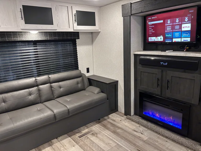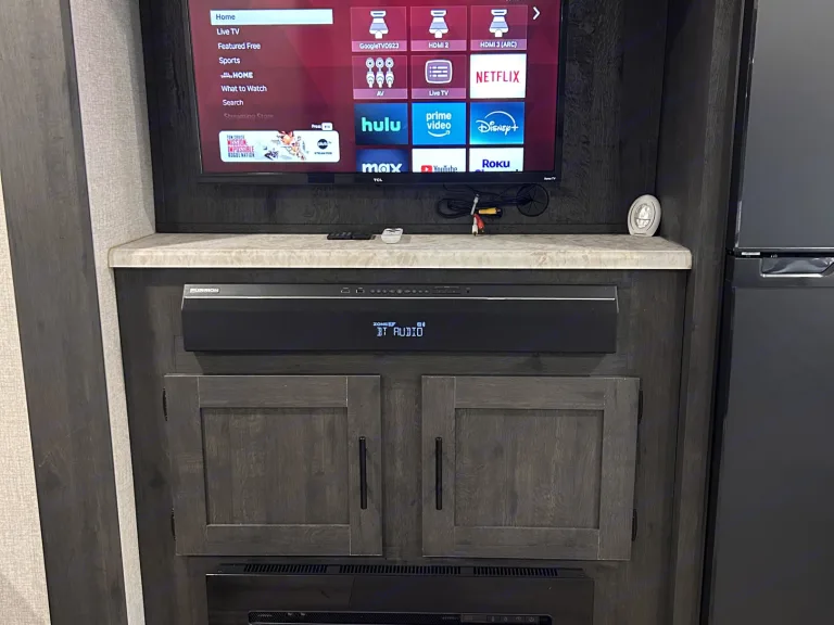 TV with Fire Stick (access to Hulu, YouTube, Disney+, and more)Basic silverware set4 plates and bowlsSet of pots and pansTwo towelsHand soapBasic cleaning suppliesToilet paper (starter supply)One full bed set (sheets, blanket, and pillows)Sewer hose for black water tank dumping