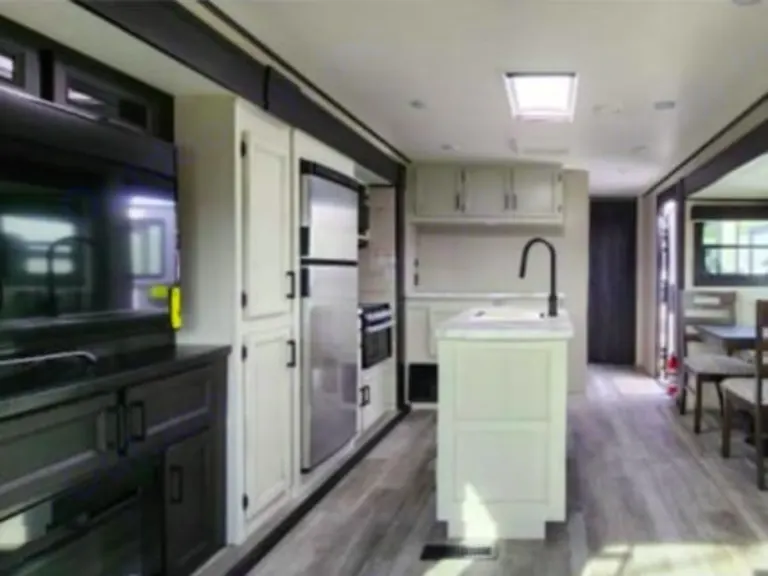 5th Wheel Layout towable. This unit has 3 large slides to expand the living dining area and a King Master. Huge closet, 2 ac's, washer dryer connections, outdoor shower and for those really hard days.....Tankless HOT Water! Huge powered awning, Center island kitchen, and the comfort of an electronic fireplace on those cool evenings. Fully centralized AC and ducted heat. The addition of a second ac unit, exclusive to the master bedroom area, really keeps things comfortable. A three buner gas range with small oven, microwave, digital TV, satelite hookup. Also included in this rental is an outdoor gas griddle. This RV has an actual dining table and chairs. Large TV and onboard radio. Toaster and an air fryer are included.What's includedFresh linens are supplied with each rental. Remote WiFi is available. Delivery & setup is available. A "make ready charge" in addition to the rental, is mandatory, and includes: cleaning, stocking of toiletries, topping off propane and if requested, filling freshwater tank. Dishes, pots, pans, cooking seasonings, paper plates, silverware, the beloved red solo's, are included. We have included 4 folding camp chairs in this rental and a pit boss pellet grill option is also available, with pellets and utensils.RecommendationsCampers of 3 to 4 is what this unit is designed for and will be the most comfortable.Other things to noteNo smoking in unit. All items shipped with the unit, excepting consummables, i.e. paper plates, plastic cups, etc. must be returned. Minimum rental duration is 3 days per reservation. A $500.00 refundable deposit is mandatory. Delivery to your destination is an additional $150.00 and includes recovery within 50 miles of pickup. If the awning is left out in a wind as is damaged, it will cost the renter $3,500.00 to replace.