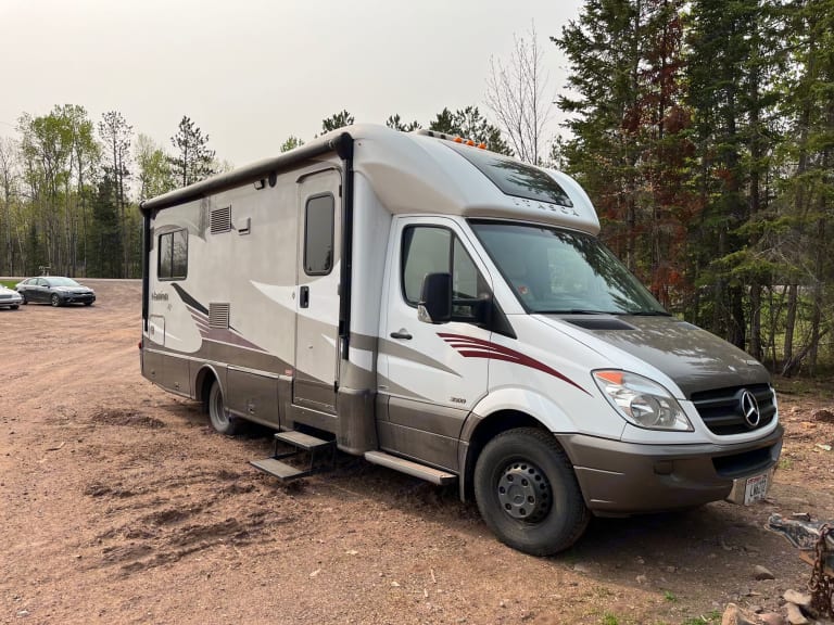 Adventure awaits in this clean and easy to drive small RV. Get out and enjoy the great outdoors while staying comfortable with all (or at least most) of the amenities of home. King back bed transitions into a table and couch area, front sofa folds out with a built in air mattress and a removable table for plenty of space when the weather isn’t so great. Plenty of storage space beneath for gear and overflow, optional bike rack can be included.RecommendationsJust 20 minutes from Lake Superior, there are endless options for beautiful hiking, waterfalls, swimming, rock picking and so much more to discover in the great outdoors. Other things to noteSmall dogs (under 15 lbs) allowed, no cats. No festivals. No smoking. No linens or bedding or dishware included.