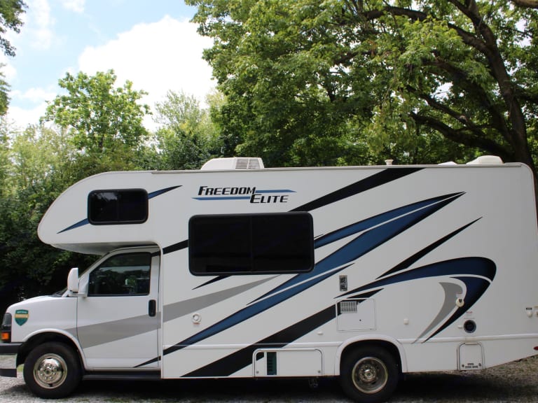 Are you Loki ready to party in our 2021 Thor Freedom Elite?LokiLoki is fully equipped with a queen-sized bed, a queen bunk, and a dinette that converts to a full sized bed. The max sleeping suggestion is 6 people. From our experience, LokiLoki comfortably sleeps 6 if some are kids. From the adult perspective, it comfortably sleeps 5. It has a full functioning bathroom and kitchen. Bathroom has a toilet, sink, storage and shower. Kitchen has an induction stove, microwave, and fridge/freezer.If weather doesn’t satisfy your expectations, enjoy board games at the dinette or shows on the 40 inch smart TV with the AC or furnace going.Nervous about the drive? Have no fear! It drives like any regular vehicle with comfortable driver and passenger seats, a back up camera, and bluetooth stereo system that can be heard throughout the cabin or just from the two seated up front. The dinette can seat up to 4 and contains 2 lap seatbelts to secure additional passengers.May have to take a driving break? LokiLoki has an on-board generator. With a guide on how to use. Everything accessible in the cabin. Park, lock-up, and turn the generator on for a hard earned travel break.LokiLoki is perfect for your ultimate road trip. Even if you’ve never traveled in an RV, we can guarantee a quick hookup upon campsite arrival to be vacation ready! We have your back with how-to guides for set up/take down, and always a message away if further assistance is needed!LokiLoki is also available for tailgating downtown Indy for Colts games! No hassle option of us taking care of set up and take down for you. Just tell us when and where to be. Tent available for rent if extra space beyond the awning is needed.What's includedLokiLoki comes with the following:Basic kitchenware (for six)