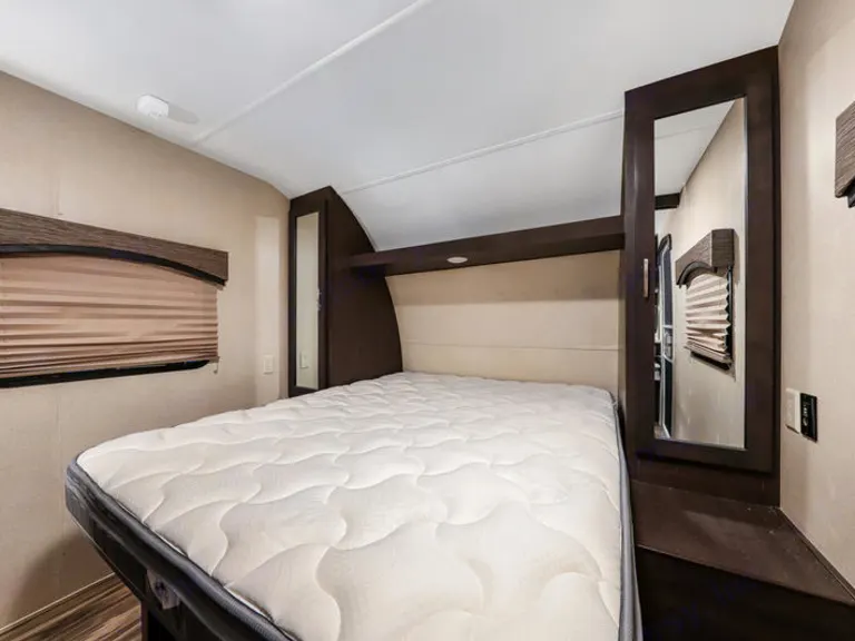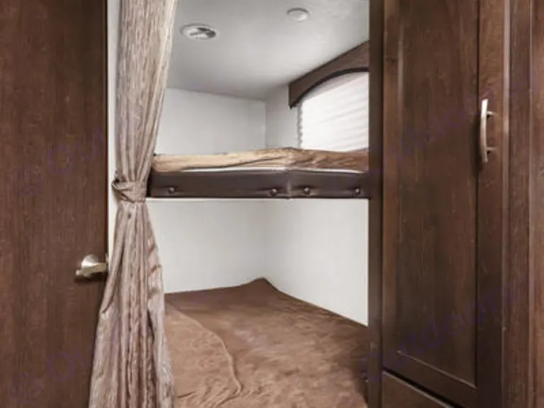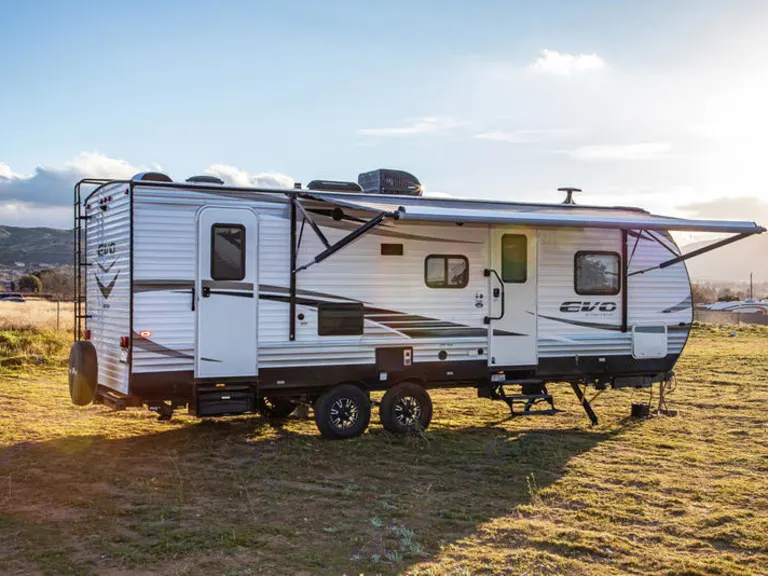 The 2019 EVO T2490 travel trailer offers a spacious floorplan with a fully-equipped kitchen, three bunk beds, a full bath with a small tub, and a main slide-out that extends the U-shaped dinette and sofa sleeper. The entertainment center includes a TV and an electric fireplace. The master bedroom features a walk-around queen bed with storage and wardrobe closets.If you're looking for comfort and plenty of sleeping capacity, this trailer might be perfect for you