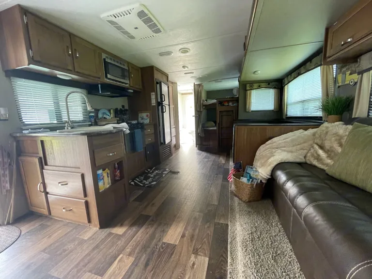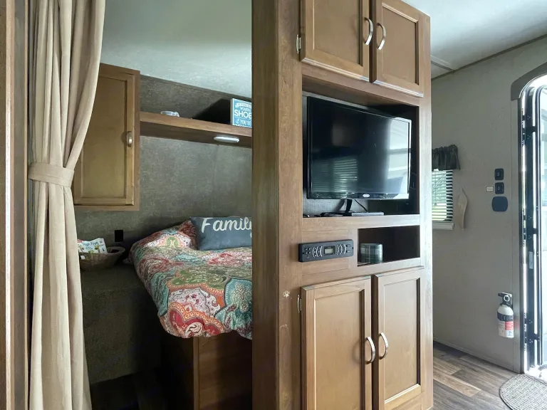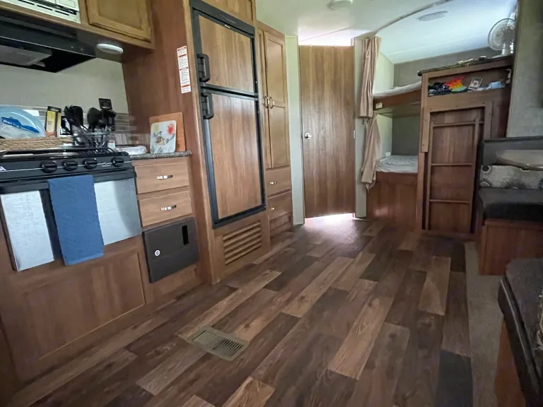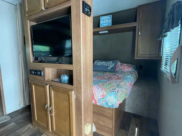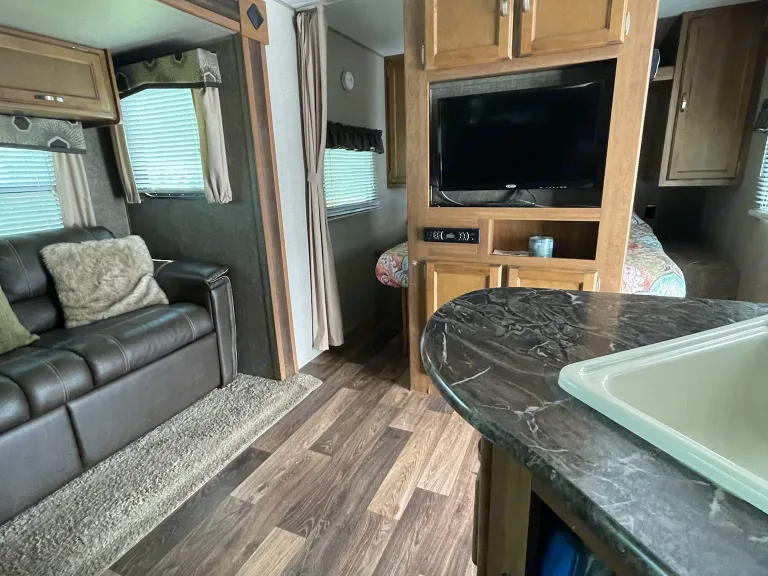 2017 Keystone RV Summerland Series with 1 large slide. Sleeps 8 comfortably with 1 queen bed up front, 2 full size bunks, dinette turns into a full and a small couch that turns into a small bed. TV in living room and a Bluetooth indoor/outdoor stereo.What's includedFully stocked with linens, blankets, towels, cook wear, kitchen utensils, coffee maker, camp chairs and camp rug.