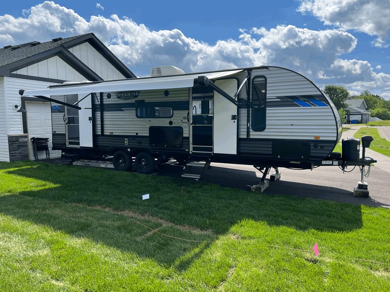 Our RV has everything you'd need to enjoy the great outdoors. This RV is very new and we are happy to share it with you. New Tuft and Needle queen mattress in master bedroom. The out door kitchen is perfect for keeping the RV cool and enjoying the huge awning while cheffing your favorite meals. What's includedCookware, dish ware, 4 camping chairs, games. Bike rack, bumper rack and generator are available as trip add ons.RecommendationsMinnesota's North Shore is our favorite place to go. The landscape is beautiful and the hikes are amazing. We also love to take out rig to Minnesota and Wisconsin's premier mountain biking locations. It is perfect for providing the creature comforts. Other things to notePlease no smoking or vaping in the RV. The awning will give you plenty of outdoor space to enjoy your favorite vices.