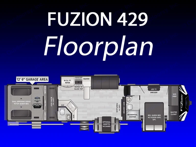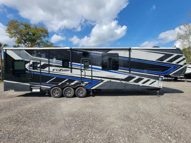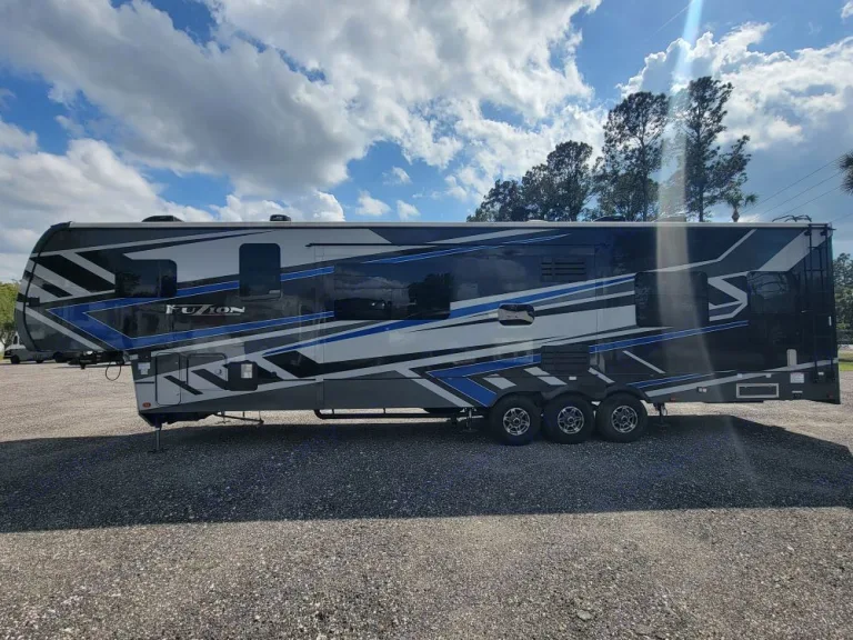 Rent this Fuzion 429 with so many amenities, this rv has 3 slides, a full size fridge with freezer, King size master bed, sofa recliners, big screen tv, fireplace, 2 double size bunks and features one and a half baths. We can deliver this 5th wheel to you today! Rent this RV today and focus on the adventure, We got the rest!What's includedBesides the camper our RV also comes with the following: